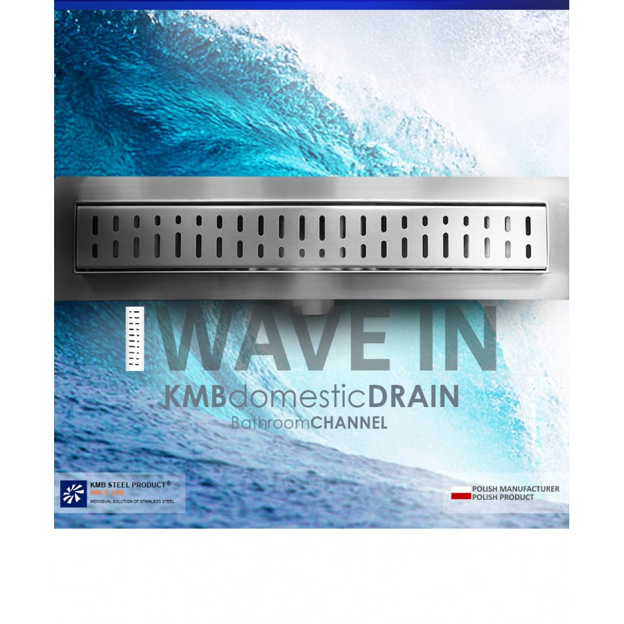 The CLASSIC-ZK-SM50-WAVEIN bathroom channel 75 mm width. Stainless steel channel and plastic outlet.