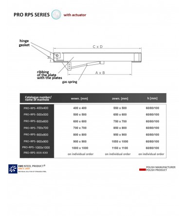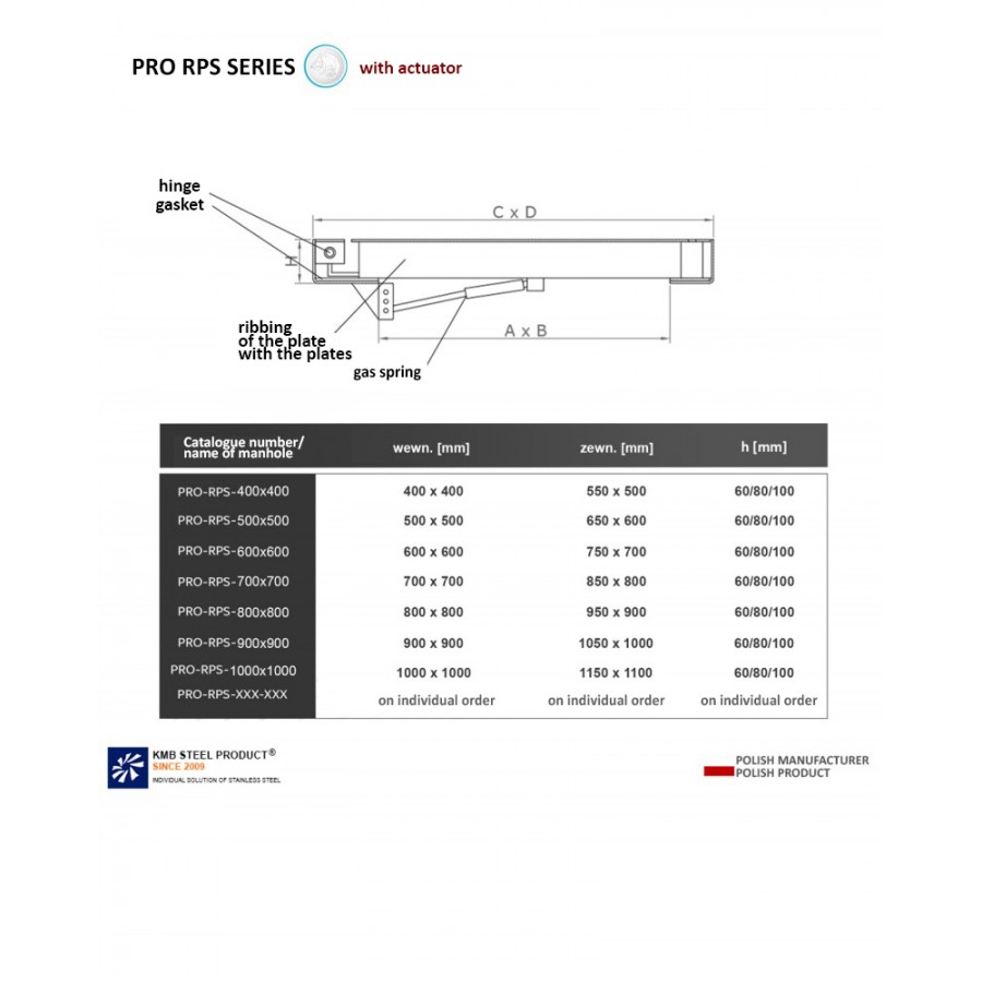 The PRO RPS stainless steel manhole with a full plate cover and actuator is a manhole 60 mm high.