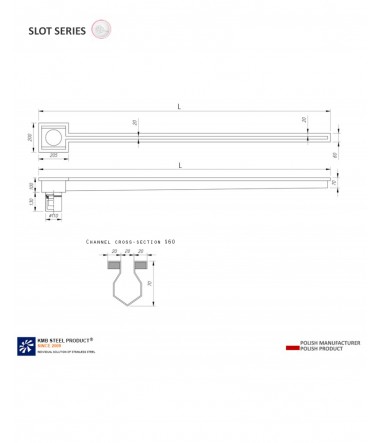 The SLOT S60- stainless steel linear drain with a height of 200 mm.