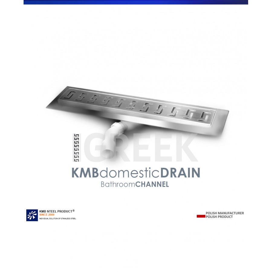 The CLASSIC-ZK-SP50-GREEK bathroom channel 75 mm width. Stainless steel channel and plastic outlet.