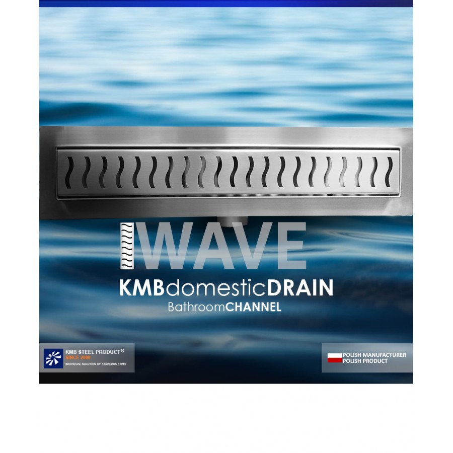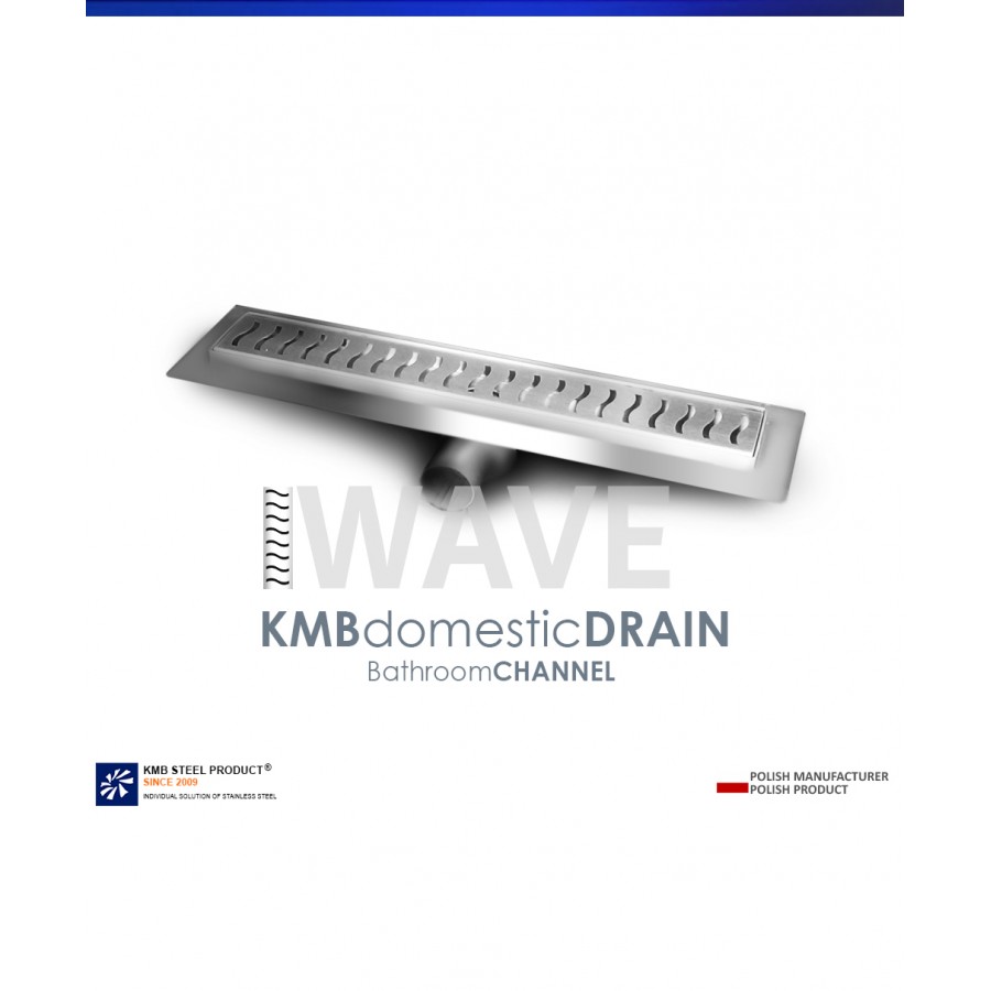 The CLASSIC-ZK-SM50-WAVE bathroom channel 75 mm width. Stainless steel channel and stainless steel outlet.
