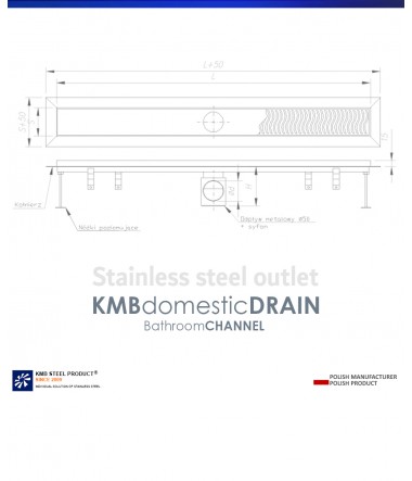 Please select the appropriate the channel - i.e. the correct. proper length of the channel after development - in the drop-down list to the right of the product image. The full size of the product with the collar is + 60 mm to each of the dimensions we propose in the tab.The material is made of AISI 304 stainless steel.