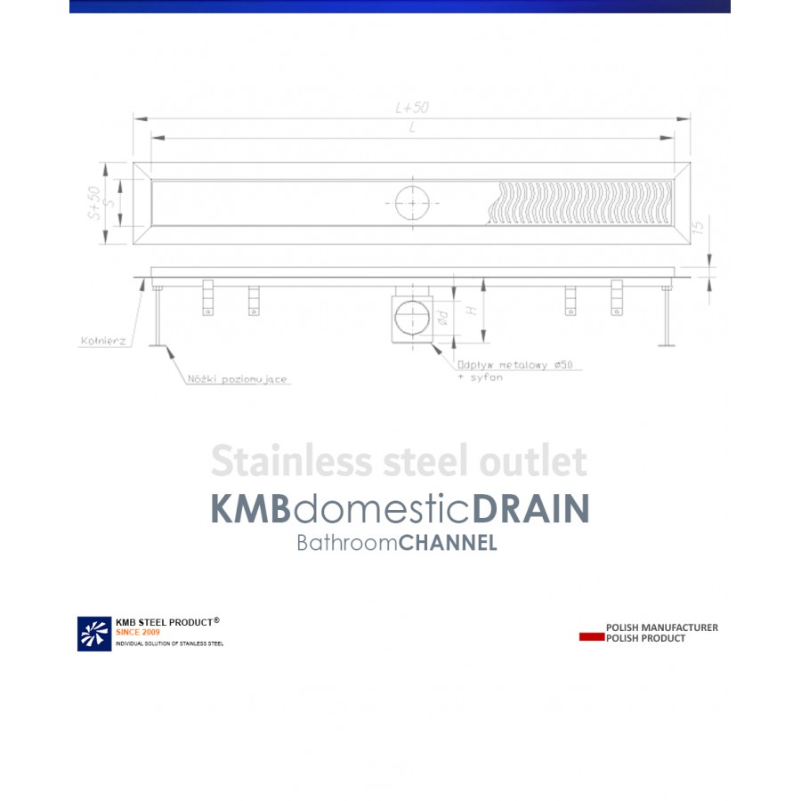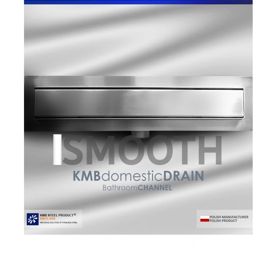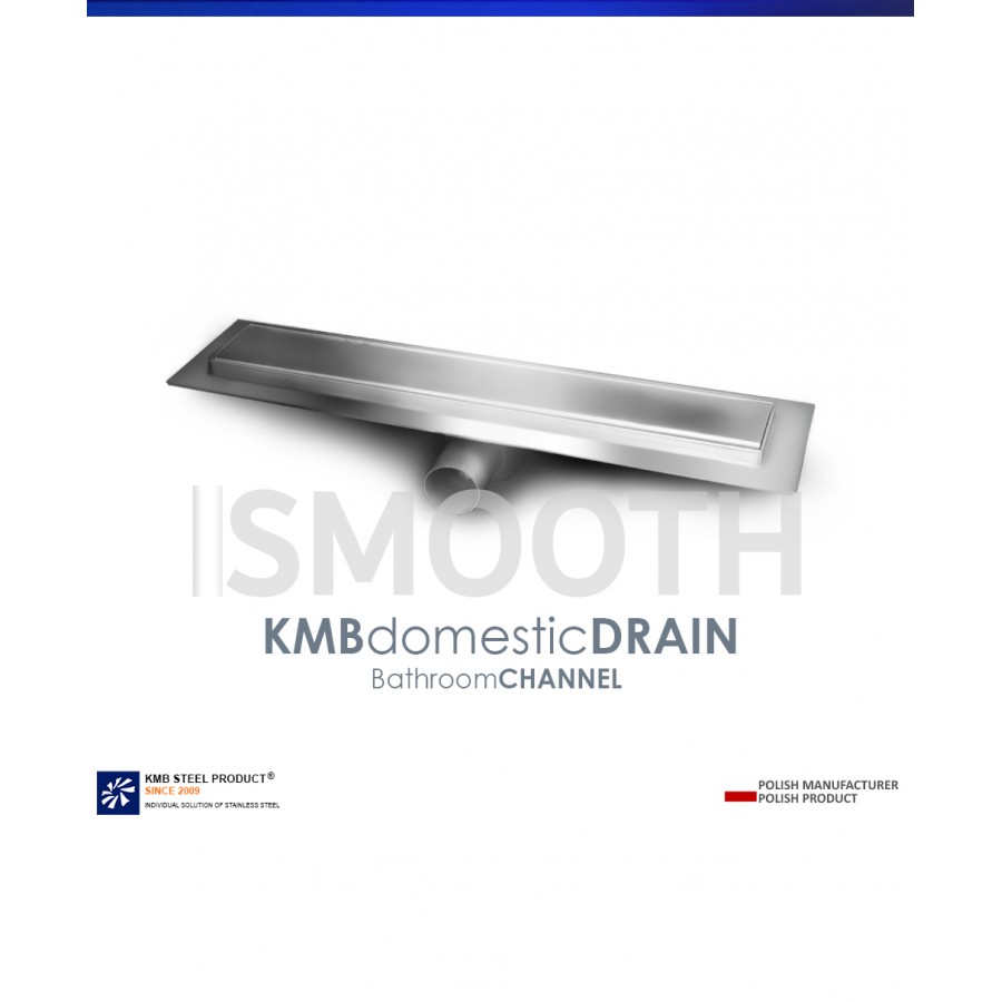 The CLASSIC-ZK-SM50-SMOOTH bathroom channel 75 mm width. Stainless steel channel and stainless steel outlet.