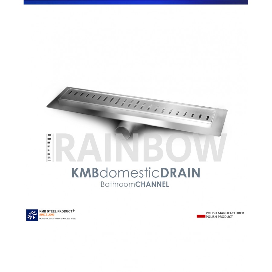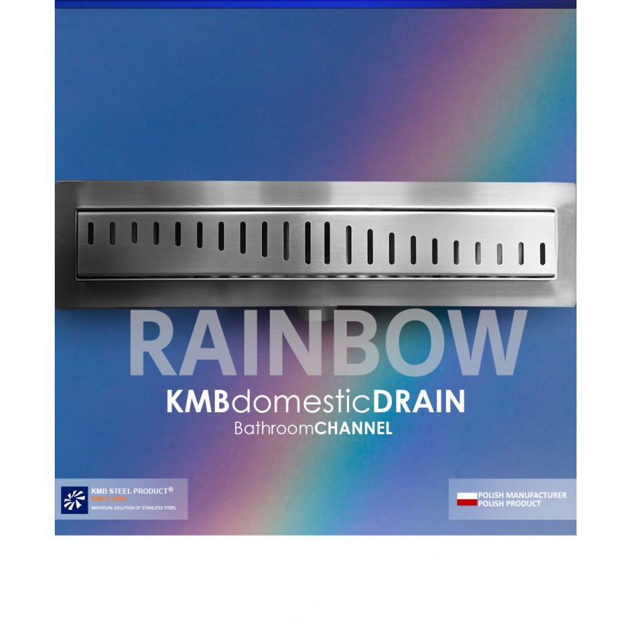 The CLASSIC-ZK-SM50-RAINBOW bathroom channel 75 mm width. Stainless steel channel and plastic outlet.